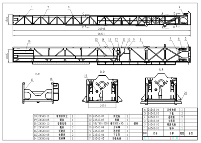 ZT27-45爆破孔钻塔整体分为钻塔底部����� �������Ƴ������������ �������Ƴ������������ �������Ƴ������������ �������Ƴ�������井口部分、塔体部分、塔顶部分、链条����� �������Ƴ������������ �������Ƴ������������ �������Ƴ����������� �������Ƴ�������加压部分、起塔机构部分。
