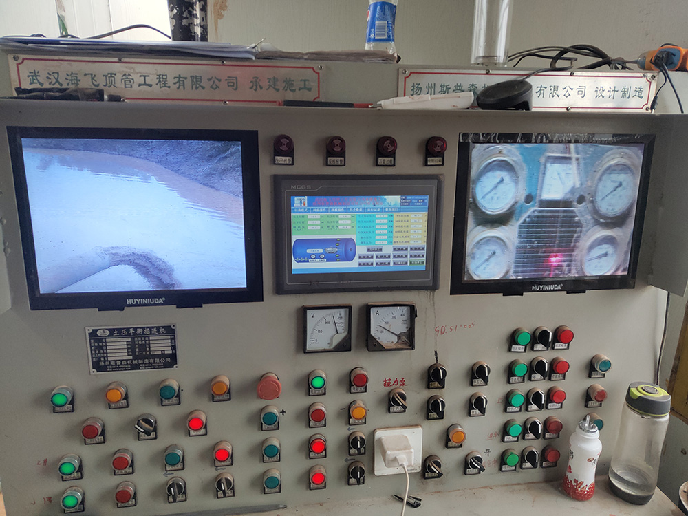 机头顶进速度为8~10m/����� �������Ƴ������������ �������Ƴ������������ �������Ƴ������������ �������Ƴ�������d,如要加大顶进速度,在保证泥����� �������Ƴ������������ �������Ƴ������������ �������Ƴ������������ �������Ƴ�������水仓泥压的条件下,要先加大泥浆流量,再计算顶进����� �������Ƴ������������ �������Ƴ����������� �������Ƴ����������� �������Ƴ�������速度,否则排泥管会堵塞。