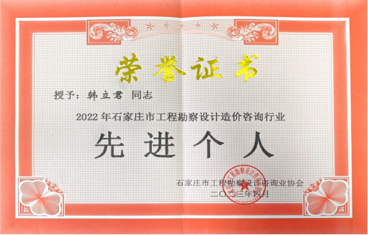 近日,石家庄市工程勘察设计咨询业协会下����� �������Ƴ������������ �������Ƴ������������ �������Ƴ������������ �������Ƴ�������发《关于表彰2022年石家庄����� �������Ƴ������������ �������Ƴ������������ �������Ƴ������������ �������Ƴ�������市工程勘察设计造价咨询行业先进����� �������Ƴ������������ �������Ƴ������������ �������Ƴ������������ �������Ƴ�������单位和先进个人的通知》(石设协字【2����� �������Ƴ������������ �������Ƴ������������ �������Ƴ������������ �������Ƴ�������023】2号),我公司被授予����� �������Ƴ������������ �������Ƴ������������ �������Ƴ����������� �������Ƴ�������“2022年石家庄市工程����� �������Ƴ������������ �������Ƴ������������ �������Ƴ������������ �������Ƴ�������勘察设计造价咨询行业先进单位”称号,韩立君����� �������Ƴ������������ �������Ƴ����������� �������Ƴ������������ �������Ƴ�������同志、商卫东同志被授予“2022年石家����� �������Ƴ����������� �������Ƴ������������ �������Ƴ������������ �������Ƴ�������庄市工程勘察设计造价咨询行业先进个����� �������Ƴ������������ �������Ƴ������������ �������Ƴ������������ �������Ƴ�������人”称号。