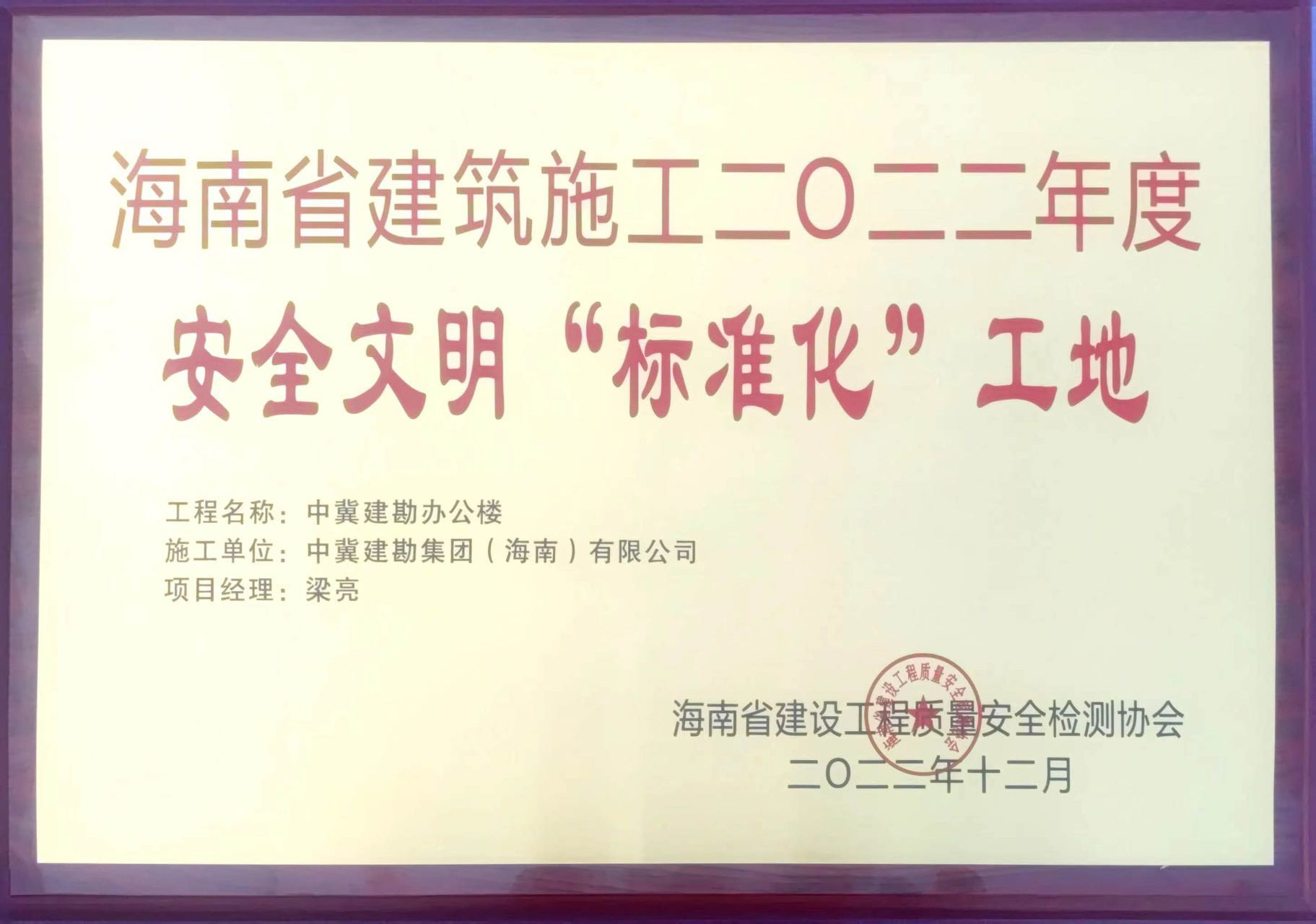 中冀建勘办公楼荣获“海南����� �������Ƴ������������ �������Ƴ������������ �������Ƴ����������� �������Ƴ�������省建筑施工优质结构工程”及海南省建筑施工二0����� �������Ƴ����������� �������Ƴ������������ �������Ƴ������������ �������Ƴ�������二二年度安全文明“标准化”工地荣誉����� �������Ƴ����������� �������Ƴ������������ �������Ƴ������������ �������Ƴ������称号
