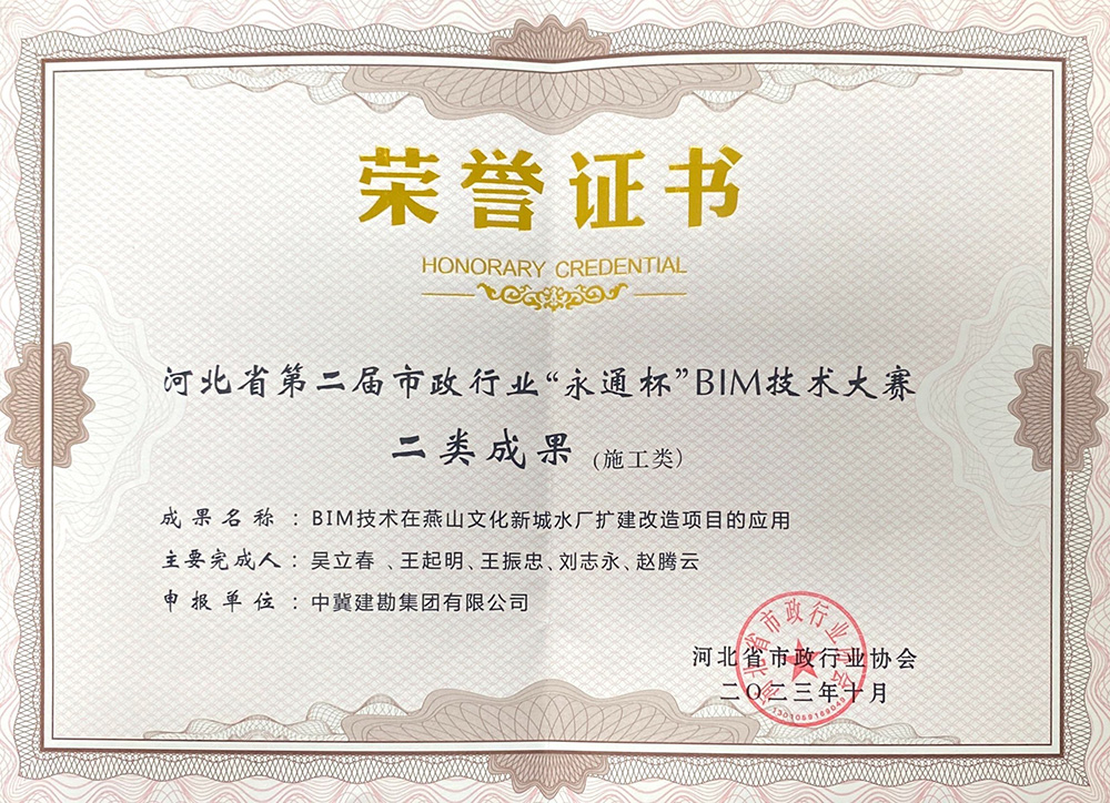 近日,河北省市政����� �������Ƴ����������� �������Ƴ������������ �������Ƴ������������ �������Ƴ������行业协会发文《关于公布河北省市政行业����� �������Ƴ������������ �������Ƴ������������ �������Ƴ������������ �������Ƴ�������第二届“永通杯”BIM技术应用大赛结����� �������Ƴ������������ �������Ƴ������������ �������Ƴ������������ �������Ƴ�������果的通知》(冀市协{20����� �������Ƴ����������� �������Ƴ����������� �������Ƴ������������ �������Ƴ�������23}37号),我公司参赛项目“BIM技术����� �������Ƴ������������ �������Ƴ������������ �������Ƴ������������ �������Ƴ�������在中冀建勘办公楼项目的应用”项目荣获一类成果、“����� �������Ƴ������������ �������Ƴ������������ �������Ƴ������������ �������Ƴ�������BIM技术在燕山文化新城水厂����� �������Ƴ������������ �������Ƴ������������ �������Ƴ������������ �������Ƴ�������扩建改造项目的应用”项目荣获二类����� �������Ƴ������������ �������Ƴ������������ �������Ƴ������������ �������Ƴ������成果。