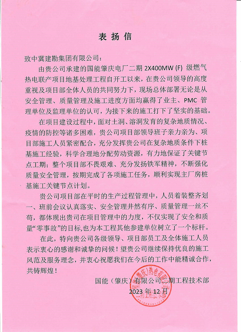 ����� �������Ƴ����������� �������Ƴ������������ �������Ƴ������������ �������Ƴ�������  ����� �������Ƴ����������� �������Ƴ������������ �������Ƴ������������ �������Ƴ�������;国能肇庆电厂二期2×����� �������Ƴ������������ �������Ƴ������������ �������Ƴ������������ �������Ƴ�������400MW(F)级燃气热电联产项目为����� �������Ƴ����������� �������Ƴ����������� �������Ƴ������������ �������Ƴ�������二期扩建工程,在总公司及领导们的帮助下����� �������Ƴ����������� �������Ƴ������������ �������Ƴ������������ �������Ƴ�������攻坚克难,面对土洞、溶洞发育的复杂地质情况����� �������Ƴ������������ �������Ƴ������������ �������Ƴ������������ �������Ƴ�������、疫情的防控等诸多困难,充����� �������Ƴ������������ �������Ƴ������������ �������Ƴ������������ �������Ƴ�������分发扬铁军精神,不断强化质量安全管理,积����� �������Ƴ������������ �������Ƴ������������ �������Ƴ������������ �������Ƴ�������极配合业主进度计划,按期完成了各项施工任务。我����� �������Ƴ����������� �������Ƴ������������ �������Ƴ������������ �������Ƴ�������单位在安全管理、施工质量管理方面为建设方、PMC����� �������Ƴ������������ �������Ƴ������������ �������Ƴ������������ �������Ƴ�������管理单位、监理方留下深刻影响,为此项目部����� �������Ƴ������������ �������Ƴ������������ �������Ƴ����������� �������Ƴ�������得到了国能(肇庆)热电有限公����� �������Ƴ������������ �������Ƴ������������ �������Ƴ������������ �������Ƴ�������司的高度认可!