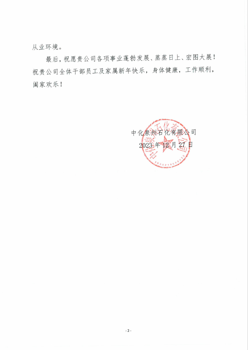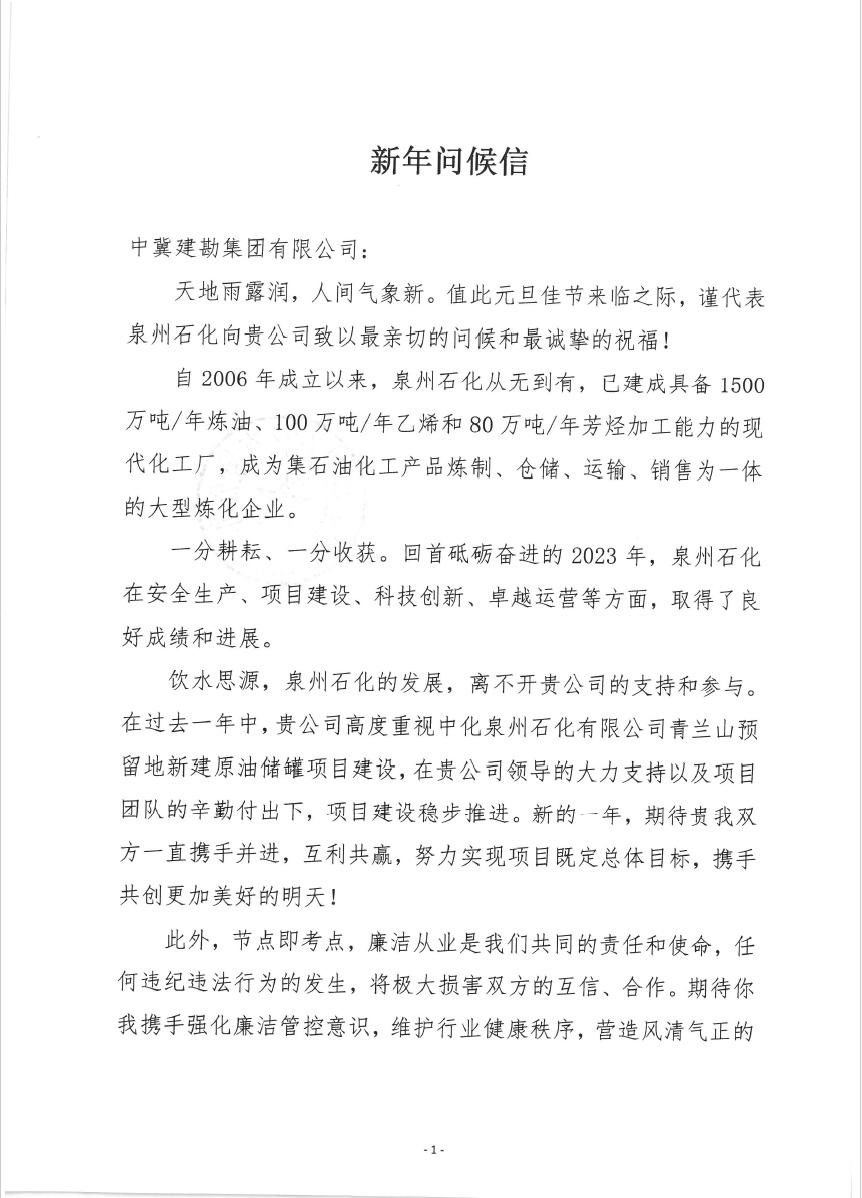 &nb����� �������Ƴ������������ �������Ƴ������������ �������Ƴ������������ �������Ƴ�������sp; 中化泉州石化有限公司为我公����� �������Ƴ������������ �������Ƴ������������ �������Ƴ������������ �������Ƴ�������司发来了新年问候信,信中中化泉州石化有限公司����� �������Ƴ������������ �������Ƴ������������ �������Ƴ������������ �������Ƴ�������肯定了我公司对中化泉州石化有限公司青兰山预留地����� �������Ƴ������������ �������Ƴ������������ �������Ƴ����������� �������Ƴ�������新建原油储罐项目建设的重视;看到了我公司及项目����� �������Ƴ������������ �������Ƴ������������ �������Ƴ������������ �������Ƴ�������施工人员为项目的辛勤付出����� �������Ƴ������������ �������Ƴ������������ �������Ƴ������������ �������Ƴ�������;并期望在新的一年里加强合作,����� �������Ƴ������������ �������Ƴ������������ �������Ƴ������������ �������Ƴ�������再创新业绩。