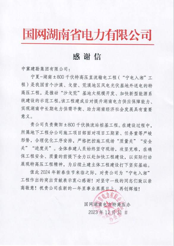 &n����� �������Ƴ������������ �������Ƴ������������ �������Ƴ������������ �������Ƴ�������bsp; 国����� �������Ƴ������������ �������Ƴ������������ �������Ƴ������������ �������Ƴ�������家电网湖南电力特高压办,为我公司承建的衡阳&����� �������Ƴ������������ �������Ƴ������������ �������Ƴ������������ �������Ƴ������plusmn;800千伏换流站����� �������Ƴ������������ �������Ƴ������������ �������Ƴ������������ �������Ƴ�������工程桩基项目部发来感谢信一封。感����� �������Ƴ������������ �������Ƴ������������ �������Ƴ������������ �������Ƴ�������谢信内容主要表达了,面对项目����� �������Ƴ������������ �������Ƴ����������� �������Ƴ������������ �������Ƴ�������的工期紧,任务重等关键形势,称赞我公司能严格把����� �������Ƴ����������� �������Ƴ������������ �������Ƴ������������ �������Ƴ�������质量关,安全关和进度关。