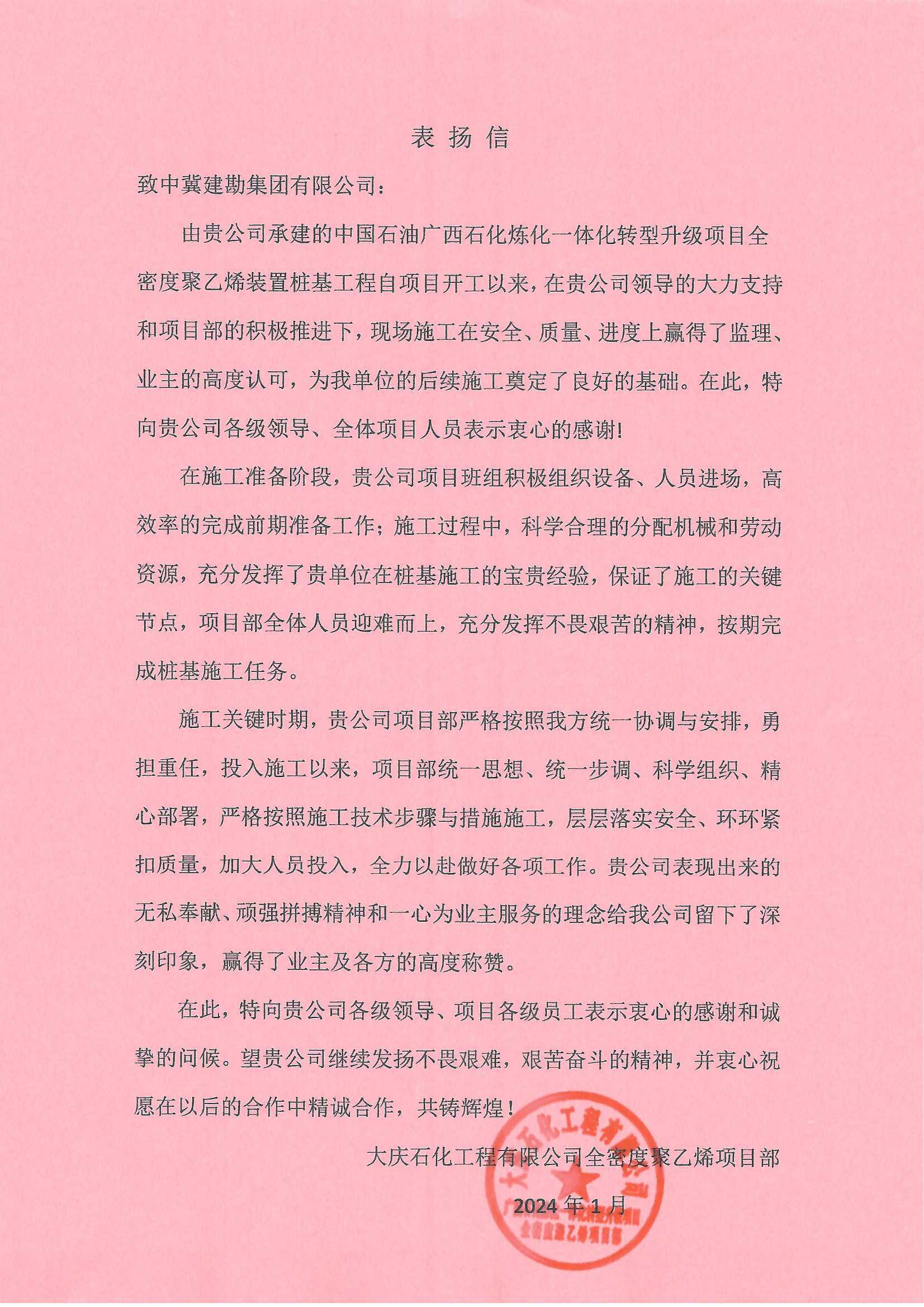 &����� �������Ƴ������������ �������Ƴ������������ �������Ƴ������������ �������Ƴ�������nbsp; 广西石化炼化项目部接收����� �������Ƴ������������ �������Ƴ������������ �������Ƴ������������ �������Ƴ�������到大庆石化工程有限公司全密度聚乙烯工程建设部项����� �������Ƴ������������ �������Ƴ������������ �������Ƴ����������� �������Ƴ�������目经理牛家伟发来的表扬信,信中肯定了我项目部在广����� �������Ƴ����������� �������Ƴ������������ �������Ƴ����������� �������Ƴ�������西石化炼化项目桩基工程中����� �������Ƴ������������ �������Ƴ������������ �������Ƴ������������ �������Ƴ�������所取得的成果。