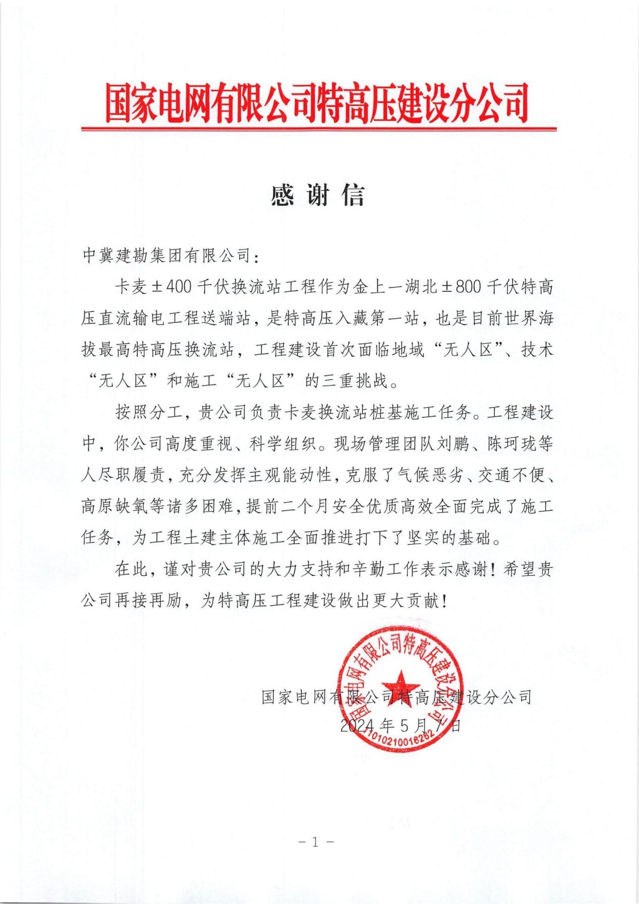 &nb����� �������Ƴ������������ �������Ƴ������������ �������Ƴ������������ �������Ƴ������sp;同时,业主及监理给予了极高的赞誉与肯定����� �������Ƴ������������ �������Ƴ������������ �������Ƴ������������ �������Ƴ������,授予了我公司“优秀承包商����� �������Ƴ������������ �������Ƴ������������ �������Ƴ������������ �������Ƴ�������”的荣誉称号;授予刘鹏同志“优秀项目经����� �������Ƴ������������ �������Ƴ������������ �������Ƴ������������ �������Ƴ�������理”荣誉称号;陈珂珑同志“优����� �������Ƴ������������ �������Ƴ������������ �������Ƴ������������ �������Ƴ������秀项目总工”荣誉称号;纪晓蒙同志����� �������Ƴ������������ �������Ƴ������������ �������Ƴ������������ �������Ƴ�������“优秀项目副经理”荣誉称号;����� �������Ƴ������������ �������Ƴ������������ �������Ƴ������������ �������Ƴ������李鑫同志“优秀安全总监”荣誉����� �������Ƴ������������ �������Ƴ������������ �������Ƴ������������ �������Ƴ�������称号;张和平同志“优秀项目质检员”荣誉称号;魏耀����� �������Ƴ������������ �������Ƴ������������ �������Ƴ������������ �������Ƴ�������文同志“优秀项目技术员”荣誉称号;张博����� �������Ƴ������������ �������Ƴ������������ �������Ƴ������������ �������Ƴ�������杰同志“优秀项目技术员”荣誉称号;王美����� �������Ƴ������������ �������Ƴ������������ �������Ƴ������������ �������Ƴ�������兵同志“优秀项目施工员”荣誉称号。此外,针����� �������Ƴ������������ �������Ƴ������������ �������Ƴ������������ �������Ƴ�������对项目部在卡麦换流站做出的突����� �������Ƴ������������ �������Ƴ������������ �������Ƴ������������ �������Ƴ�������出贡献,国网特高压分公司特意撰写����� �������Ƴ������������ �������Ƴ������������ �������Ƴ������������ �������Ƴ�������了一份感谢信,对于我公司的施工履约能力给予肯定����� �������Ƴ������������ �������Ƴ������������ �������Ƴ������������ �������Ƴ�������和感谢,期待后续工程继续合作,再����� �������Ƴ������������ �������Ƴ������������ �������Ƴ������������ �������Ƴ�������创佳绩!