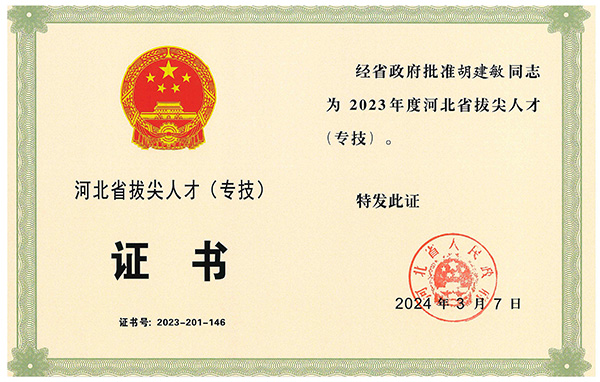 经公司组织申报,石家庄市鹿泉区人民政府、石����� �������Ƴ������������ �������Ƴ������������ �������Ƴ������������ �������Ƴ�������家庄市人民政府推荐,河北省人����� �������Ƴ������������ �������Ƴ������������ �������Ƴ����������� �������Ƴ�������力资源和社会保障厅组织评审、答辩,河北省人民政����� �������Ƴ������������ �������Ƴ������������ �������Ƴ������������ �������Ƴ�������府批准,公司胡建敏同志荣获2023年度河北省����� �������Ƴ������������ �������Ƴ������������ �������Ƴ������������ �������Ƴ�������拔尖人才(专技)。