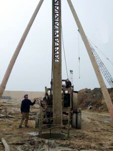 针对上述要求,工程现场采取����� �������Ƴ������������ �������Ƴ������������ �������Ƴ������������ �������Ƴ�������以下针对措施:①由于花岗岩强度较高,冲击钻成孔速����� �������Ƴ������������ �������Ƴ������������ �������Ƴ������������ �������Ƴ�������度慢,可能对成桩质量产生影响。因此����� �������Ƴ����������� �������Ƴ����������� �������Ƴ������������ �������Ƴ�������结合以往工程经验,根据本工程地层特����� �������Ƴ����������� �������Ƴ������������ �������Ƴ������������ �������Ƴ�������点,制定了比较切合实际的施工操作参数,提高����� �������Ƴ������������ �������Ƴ����������� �������Ƴ������������ �������Ƴ�������了成孔施工速度,确保单桩����� �������Ƴ������������ �������Ƴ������������ �������Ƴ������������ �������Ƴ�������成桩总体时间符合设计要求。②现����� �������Ƴ������������ �������Ƴ����������� �������Ƴ������������ �������Ƴ�������场加工了两套清孔装置,有效地����� �������Ƴ������������ �������Ƴ������������ �������Ƴ������������ �������Ƴ������提高清孔速度和质量,保证了沉渣厚度满足����� �������Ƴ������������ �������Ƴ������������ �������Ƴ������������ �������Ƴ�������设计要求的不大于5cm。③����� �������Ƴ����������� �������Ƴ������������ �������Ƴ������������ �������Ƴ�������在冲击钻头焊上取样器,解决了����� �������Ƴ������������ �������Ƴ������������ �������Ƴ������������ �������Ƴ�������地层鉴定需要样品的问题。
